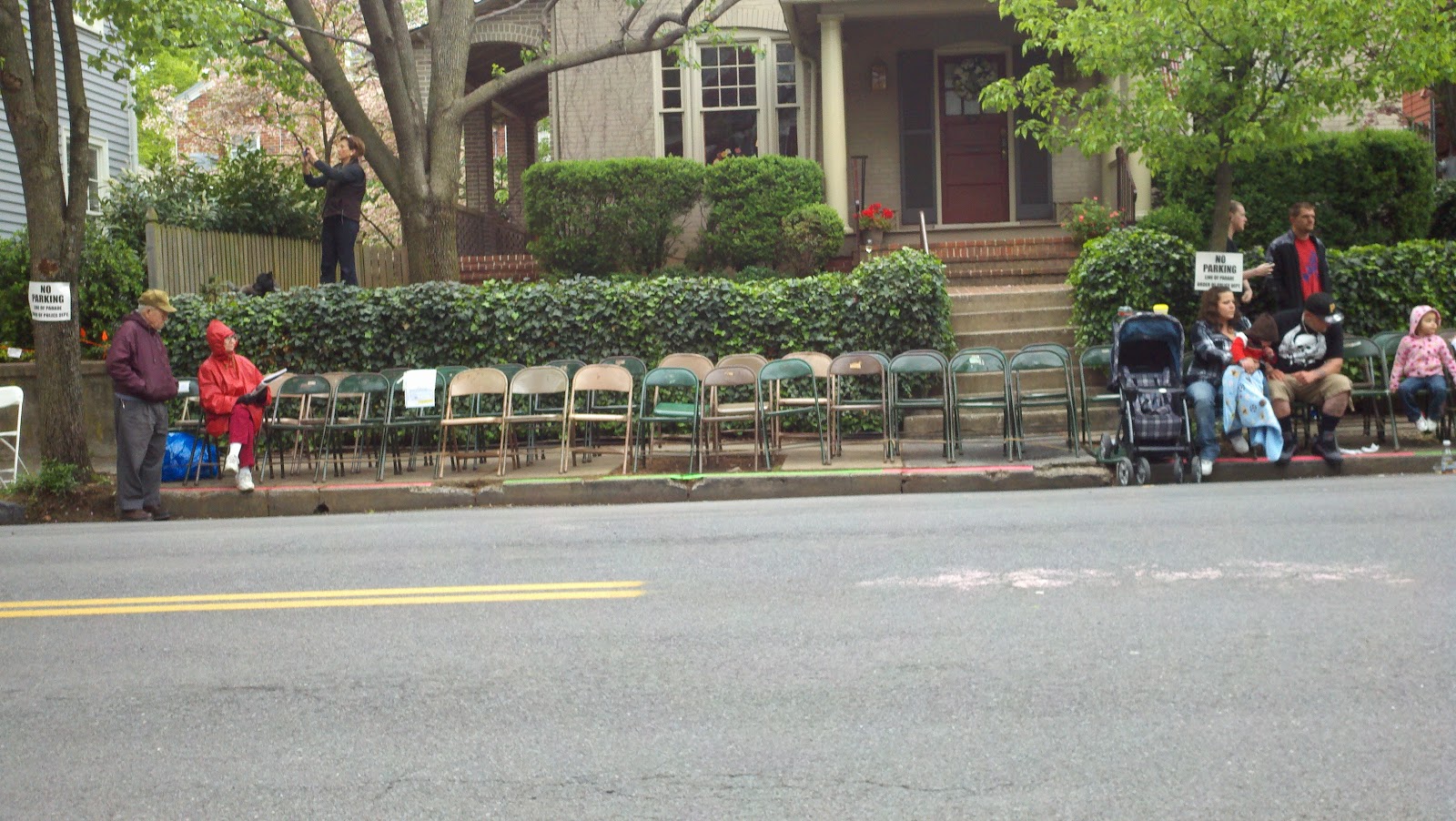 Where I was sitting for the parade were all the usuals. The people I look forward to seeing. The teachers who cheer on DMMS like nobody's business. The young man (with special needs?) who loooves this parade. The owners of the house who still remember when I was a Little Maid with their daughter and had a luncheon in their backyard where we ate mud pudding with gummy worms.
